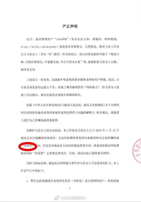 (1)马苏要证明微博中提到的 M 是马苏,这点非常重要。虽然黄毅清标榜的是实锤,但人家自始至终都没有提名道姓,而且还特别声明「以上内容皆为化名,请网友不要胡乱猜测」,只是吃瓜群众觉得是马苏而已。而法院可能因为这一点宣告诽谤罪不成立。