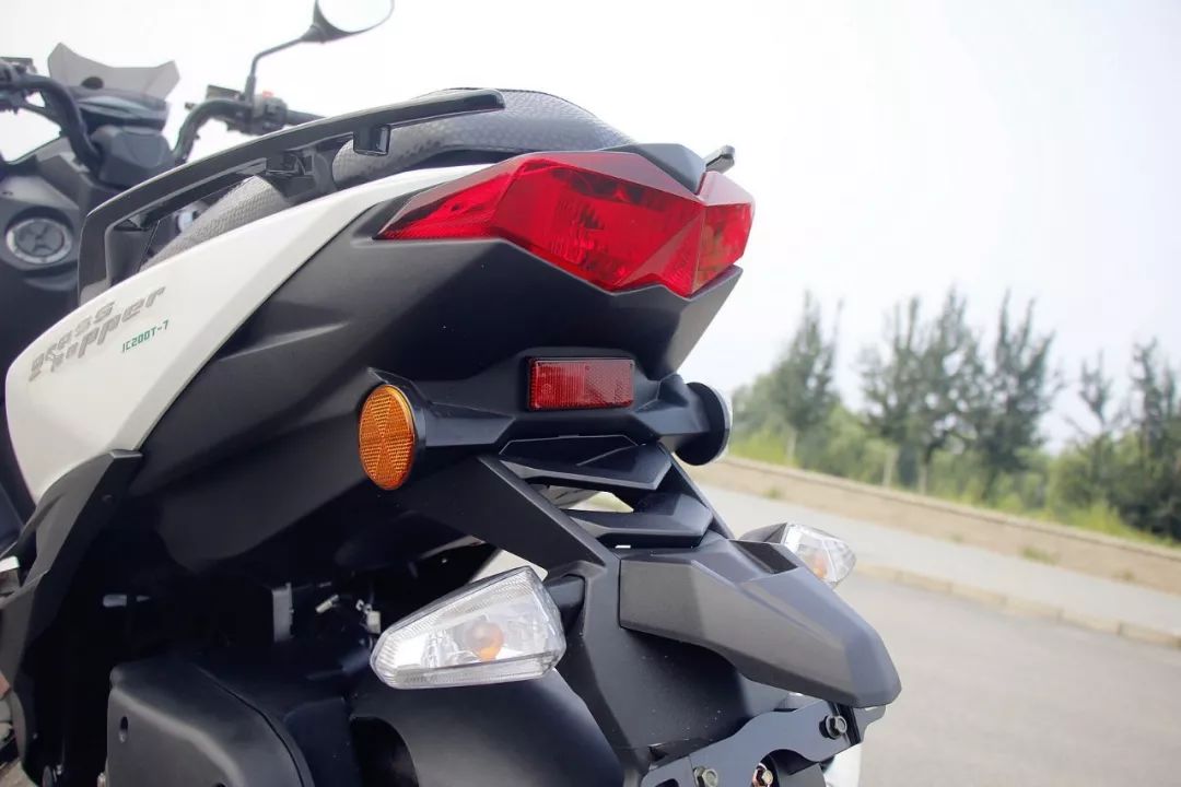 起步有力,加速一直持续到130,虽然没有2冲的阶段性拉扯感,但驾驶者能一直感觉到车在加速,发动机的声浪比起150cc以下的踏板,要混厚的多,轮胎的抓地力和刹车都能满足需求,如果进行一些改装,将如虎添翼。