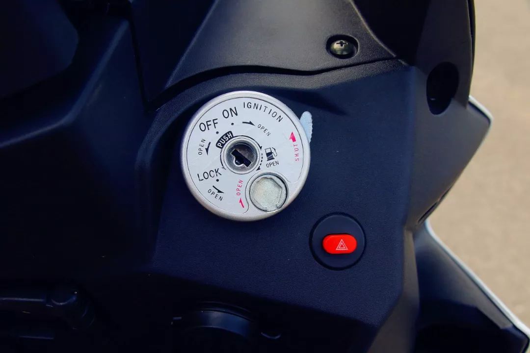 左:开座桶;右:开钥匙门;按下往左:锁车把;按下往右:开油箱盖。