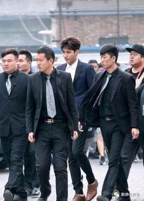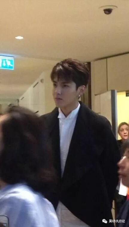 187cm的身高让吴亦凡经常在人群中鹤立鸡群,这张照片虽然有点糊但仍能看到他那精致的五官。