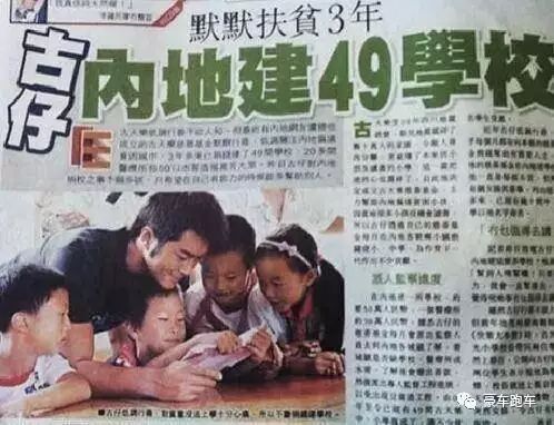 如果你觉得不开车没什么的,但是古仔捐助的这79所希望小学肯定让你觉得他是个“好人”。事情的开始是在2008年汶川地震后,古仔因为地震受到震撼,随之立即成立了自己的慈善基金,向灾区踊跃捐款修盖学校。据统计,古仔已经在贫困地区捐建了79所小学,覆盖了两广和西南贫困山区,包括四川、广西、贵州、甘肃等省份。
