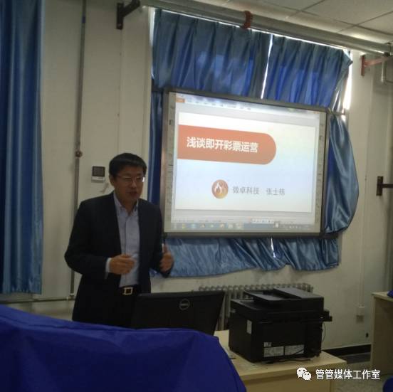 在2个多小时的时间里,张士栋先生系统的介绍了即开型彩票运营管理、运营系统管理SAAS服务、彩票智能终端。用轻松、活泼、幽默的语言,丰富的现实案例讲述了即开型彩票的定位、模式与创新和运营的核心等。同时讲解了在运营管理中出现的各种运营模式,诸如点对点促销刮彩、自动出票器、直播刮彩等模式的创新方法,也指出竞猜型彩票将是彩票行业方向。同时用形象生动的语言重新诠释了运营与推广的本质区别,最后对彩票专业的学生提出了新思维,即思维导图发散性思维,让同学们学会这个方法,能更周密思考,掌握具体事物本质。