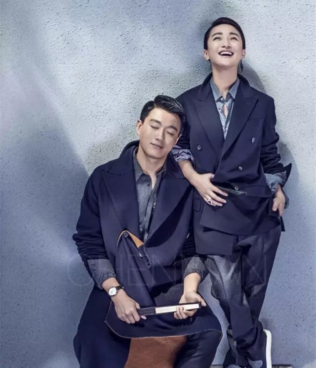 ▲周迅和佟大为同台为某杂志拍摄的封面图中,短发的周迅一身笔挺的西装帅气完全不输佟大为!