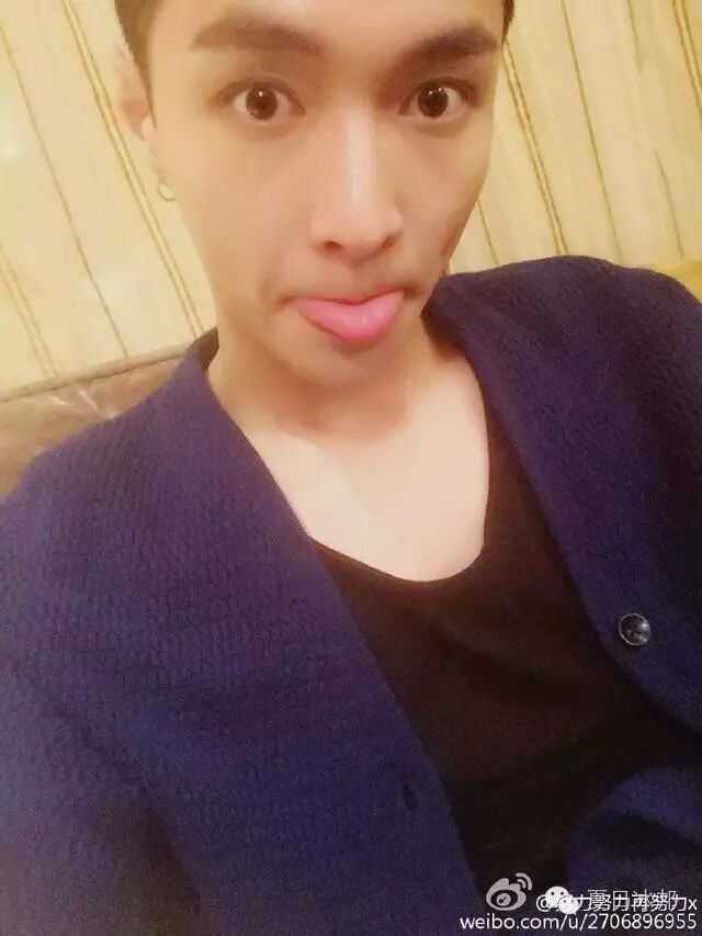 张艺兴吐舌卖萌。