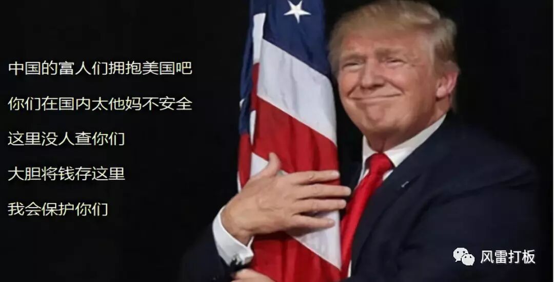 中国信奉的是精英文化,精英们向中国人民传授着价值观念,明星们讲话比领袖讲话更有作用。当精英们都倒向了特朗普,中国还怎么跟他玩,人才可以流动,但在中国赚的钱,必需留在中国,你何时看过美国人大量的财产转移来中国。