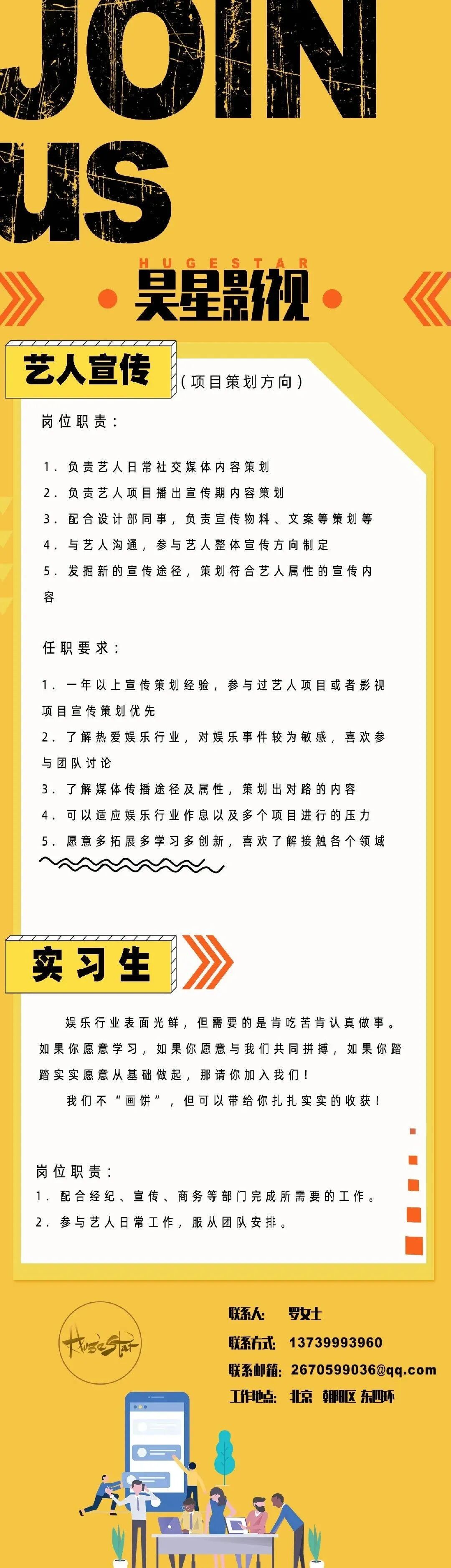 【实习】罗晋团队昊星影视招聘实习生 每天一个实习 内地男星 2020-10-05 12:30:24 1034 创作不易,用心坚持,欢迎请BaGua喝几杯爱心咖啡!打赏并支持本文 打赏并删除本文 点击蓝字,每天收获一个实习 招聘实习生扫描下方二维码添加实习小助手 进专属实习群【每天一个实习】是专注于大学生求职实习赛事分享的平台。目前掌握大量覆盖多城市,多岗位的实习资源信息,日常输出优质实习,力争让学生get offer。欢迎各大品牌发布商务合作,联系微信:19113724339 创作不易,用心坚持,欢迎请BaGua喝几杯爱心咖啡!打赏并支持本文 打赏并删除本文 感谢您的支持鼓励,我会继续努力的!文章地址:用户邮箱:打赏金额:USDT 请输入数字点击”去打赏“,即可进行打赏支持本文章哦 罗晋 About the Author 每天一个实习 功能介绍:你的实习 我来把控每天分享一个实习 offer递给你~ Related Posts 【实习】罗晋团队昊星影视招聘实习生 2020-10-05 12:30:24 发表评论