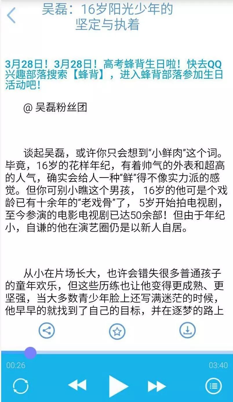 Ps:需要下载音频的,自行到高考蜂背APP(放松一下<明星励志馆)里去找哦~