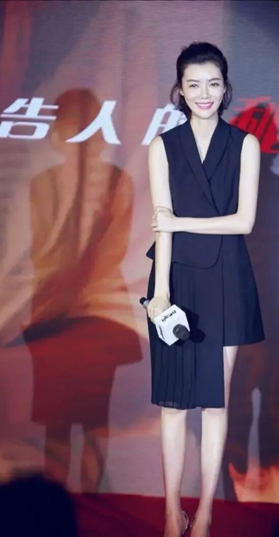 站在舞台上面灯光各方面的条件会好一些,笑起来的时候虽然露出了洁白的牙齿,但是脸上的那些法令纹看的只会更加的明显一些,身上穿的这条裙子选择的是黑色,但是下面的那一双腿感觉就像是不真实存在一样,实在是太瘦了!