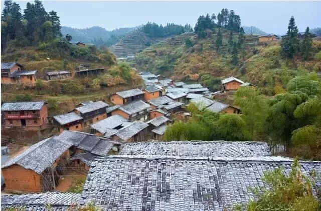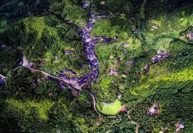 整个村子被山林包围,曲径通幽处,看到一座座的房屋,就像是大山深处的一副色彩画。
