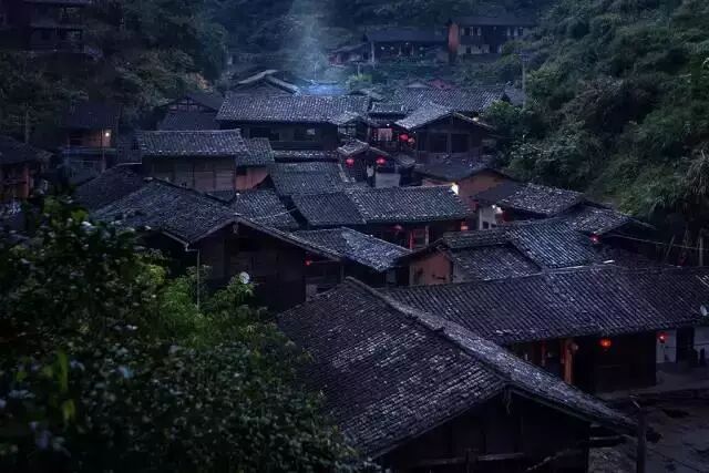 这里更多的是留守老人和儿童,夜晚,老人们在煮饭,黄昏下,这座小村显得更迷人。