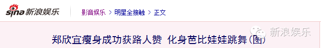 标题上也不再出现郑欣宜小胖妞的字眼了,说她化身芭比娃娃!这评价简直从地上到天上的差距。