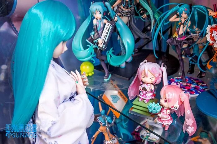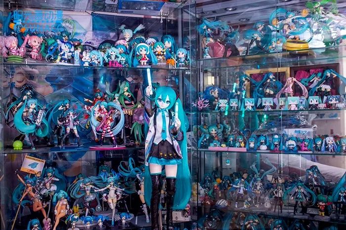 起初,这位葱厨因为非常喜爱初音所以在很长一段时间里收藏了各种初音相关的物件,其中包括:大型手办,粘土,人偶娃娃,手绘作品、挂画、签绘抱枕、cd专辑、周边耳机等等,而每当他收集到新的初音时都会到推特上与大家分享自己的“爱妻”,对于众多初音粉而言,这无疑是最幸福最值得自己去羡慕的事。