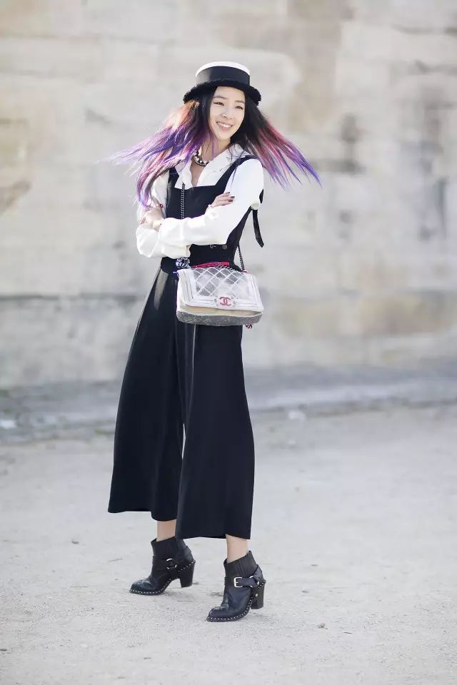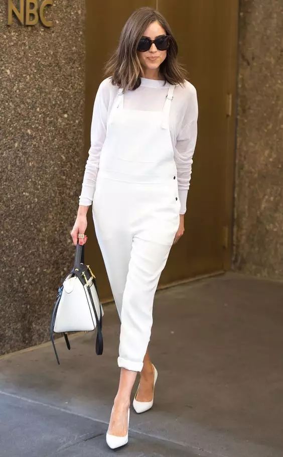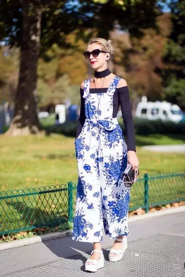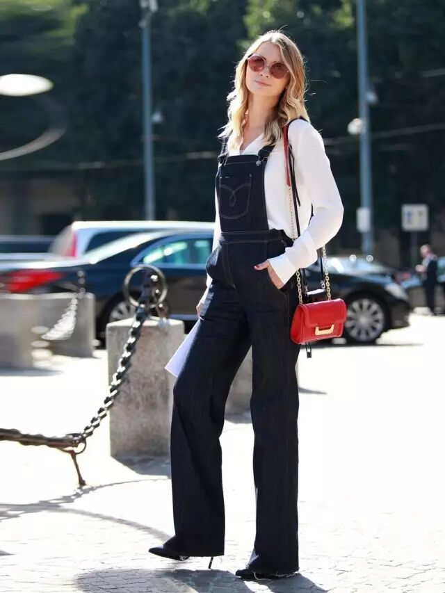大多数背带裤背带都是能调节的,一定要让它保持在胸部及胸部以上的位置,否则穿了高跟鞋露了脚踝也是亡羊补牢。