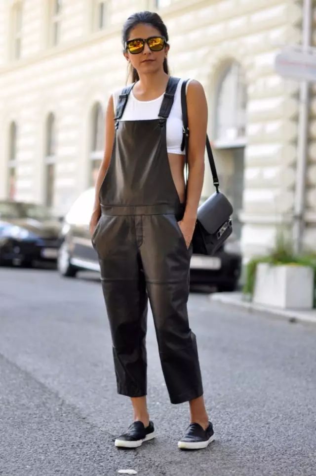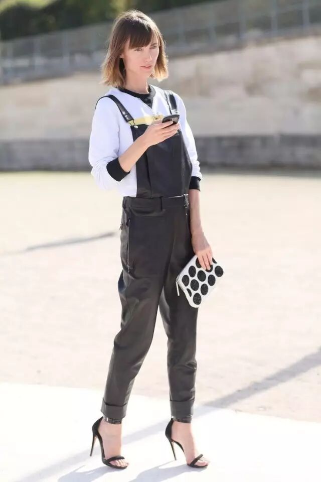皮质背带裤给人的感觉,更多是散发着别样的性感且帅气的魅力。