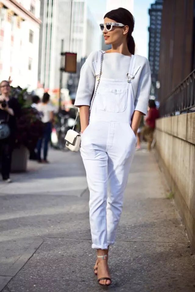 除了经典的黑白蓝三色以外,其他颜色的背带裤穿在身上会让人更有活力感。