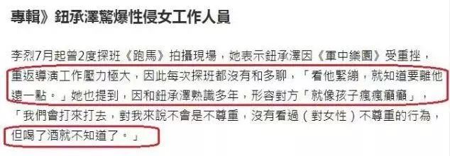 读书的时候猥亵女生洋洋自得,成名之后假公济私占各路女星便宜,再加上平时名声也不怎么样,因此爆出性侵女工作人员的事情之后,不少人都觉得钮承泽就是个惯犯,只不过这回踢到了铁板遇上了一个刚的,所以才翻车。