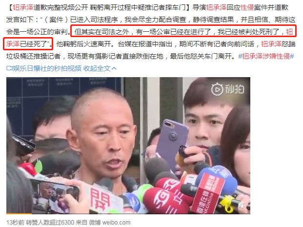 “我期待这会是一场公正的审判,但在司法之外,我已经被判处死刑,钮承泽已死”