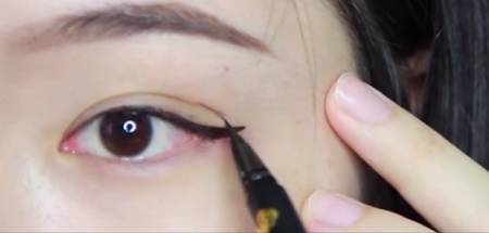 step2:在上图的基础上用眼线笔加粗眼线