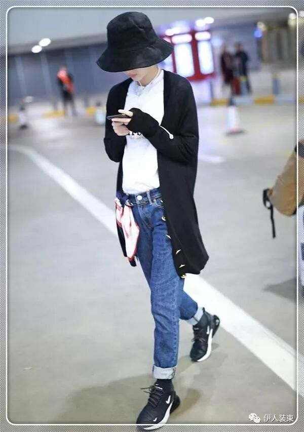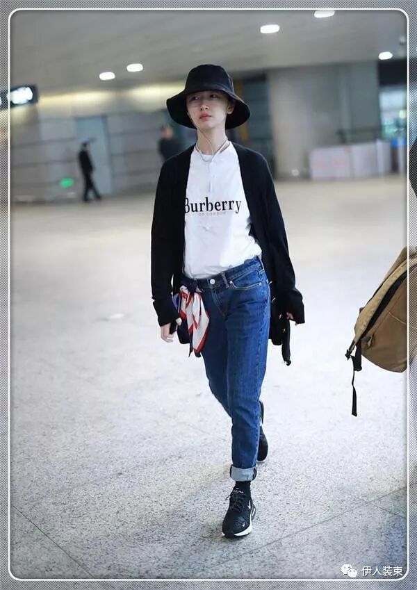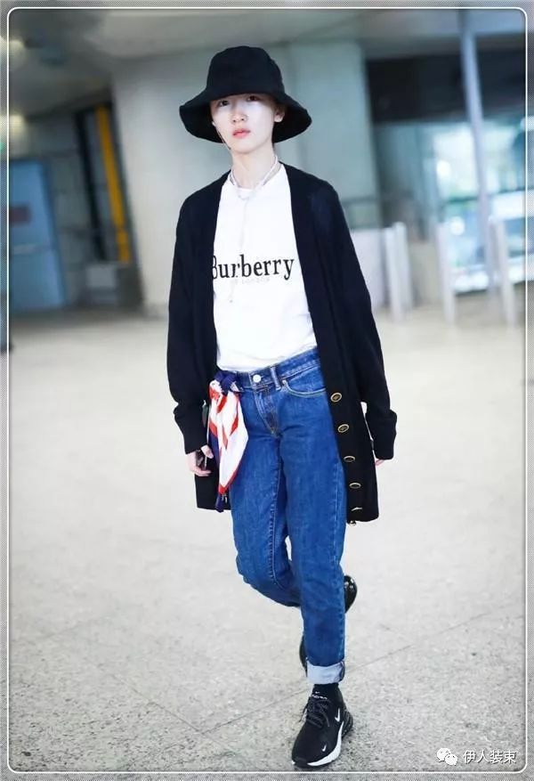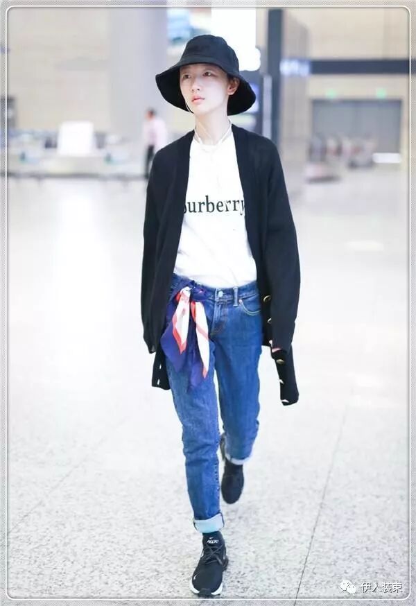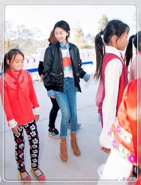 帅气的小立领上衣加上修身的牛仔裤让周冬雨看起来满满都是元气少女的感觉,外搭一件黑色的宽松外套更是多了几分酷帅的气息