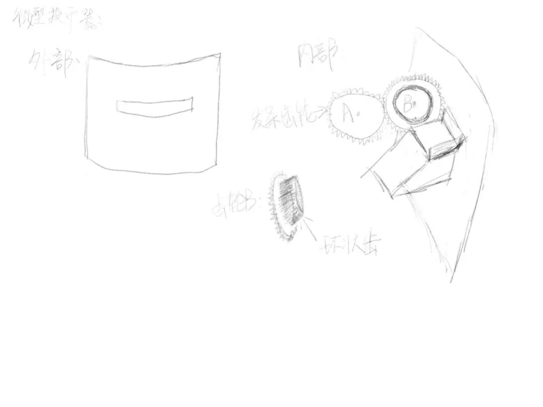 微型投币器设计较为简单,推入硬币转动齿轮B,带动机芯上的齿轮A转动从而给发条充能。
