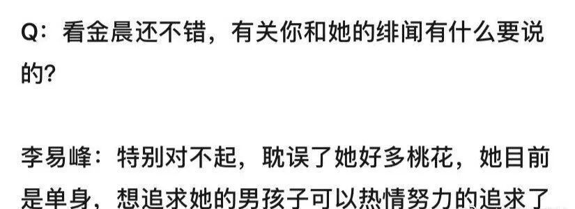 不过LYF前几天有出面澄清,自谦地表示对不起金晨,耽误了她的桃花,并且鼓励喜欢金晨的男性大胆去追,金晨目前是单身。