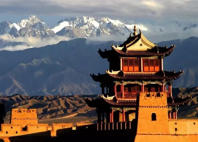 登上城楼,可以祁连山麓在远方延绵,十分壮观