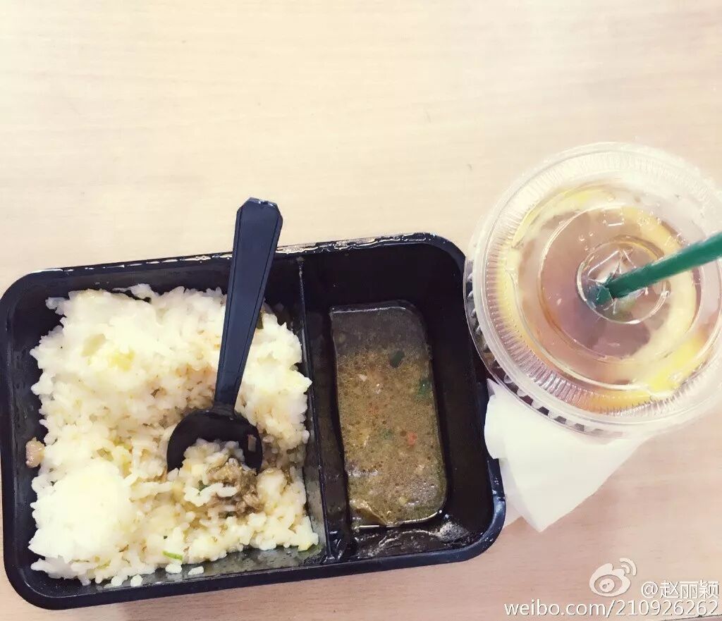 前几天赵丽颖晒出的一张外卖食物照片里,可以看出颖宝吃光了菜,但主食米饭只消耗了一点点。