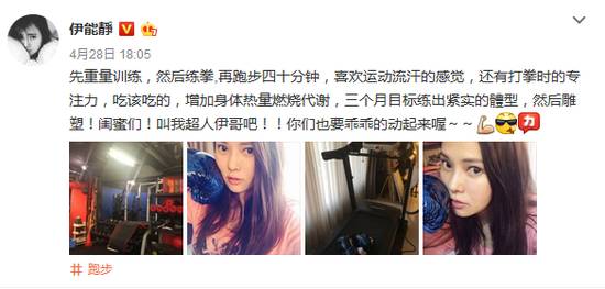 运动方面:坚持周一到周五,每天一小时重量训练,两天一次有氧拳击,外加每天40分钟的跑步。