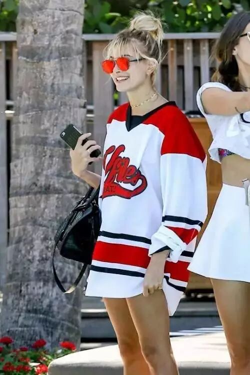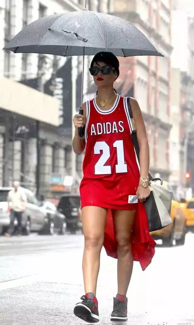 球衣风T恤裙穿在女孩子身上阳光俏皮,还有种穿男友衣服的小性感。