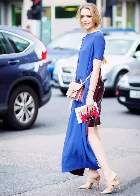 高个子除了可以穿短款的T恤裙,还可以放心地尝试长款的T恤裙,今年尤其流行开叉的款式。