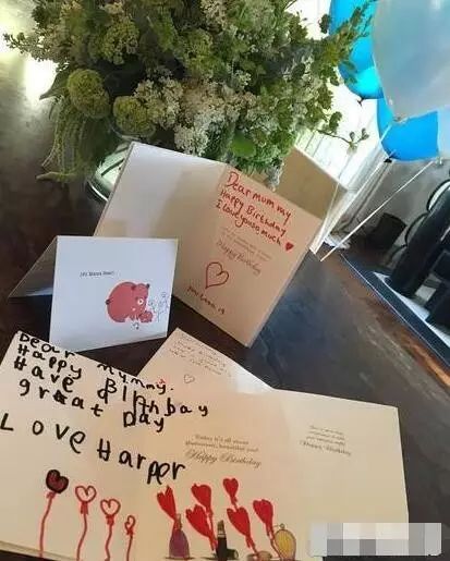 随后维多利亚也晒出孩子们送她的卡片,其中最显眼的一张是4岁的女儿小七用歪歪斜斜的笔迹写的:“亲爱的妈咪,生日快乐,度过美好的一天。爱你,小七。”卡片上还画着可爱的气球图案。这一家也是太甜!