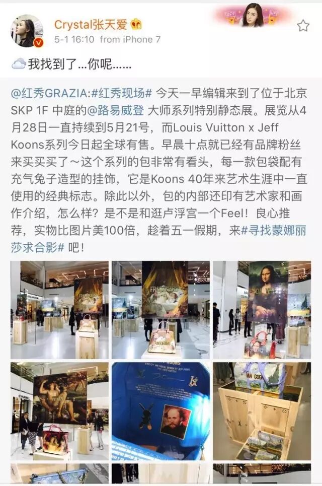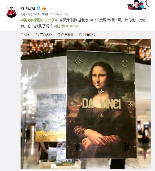 我们的读者从不错过任何一个时髦的展览,这次红秀GRAZIA微博上发起的活动#寻找蒙娜丽莎求合影#截至截稿前,已经有593万群众围观,话题主页也被前往现场参与的网友刷了屏。更重要的是,参与者中还有明星!