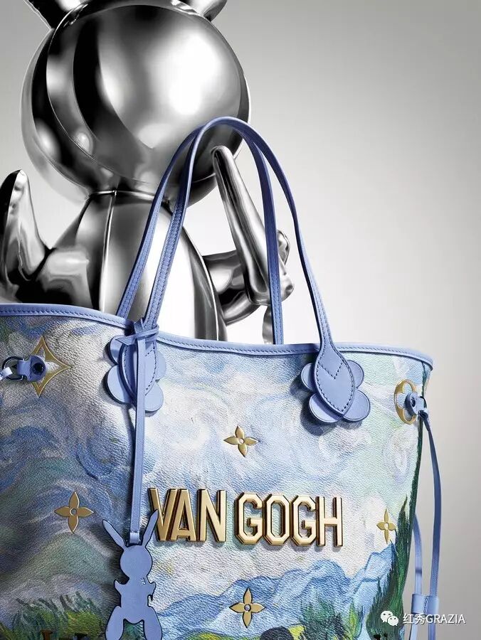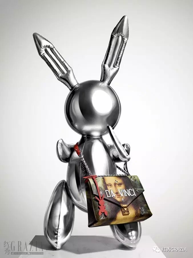 这个系列为什么每只包袋上都会有一个充气兔子包饰挂件呢?自然是和这次合作的艺术家Jeff Koons有关。