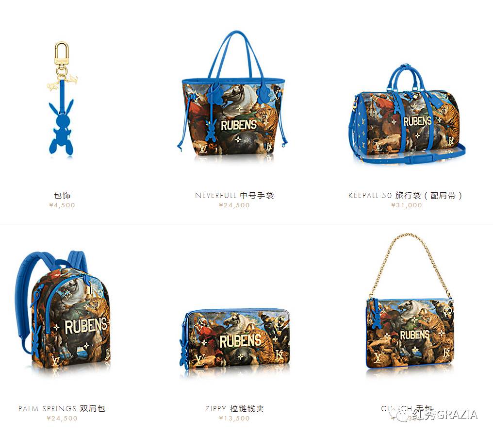 这次,Koons从自己长期创作的“Gazing Ball”绘画系列——多件大尺寸手工绘画,古典大师杰作的重制品——中汲取灵感,以多款大师杰作的影像,创作出一系列路易威登包袋及配饰作品。