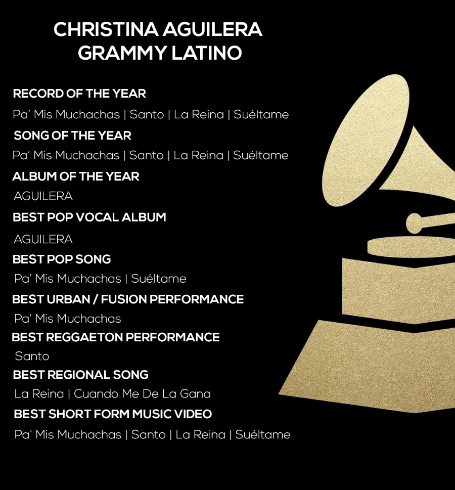 虽然她的一系列专辑都没有打入销售排行榜,但专辑获得了音乐机构的青睐,今年发布的拉丁专辑《Aguilera》就在拉丁格莱美获得了9项提名,包括年度歌曲、年度专辑、年度制作、最佳流行专辑、最佳流行歌曲等……
