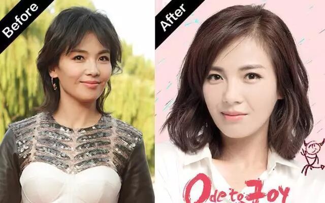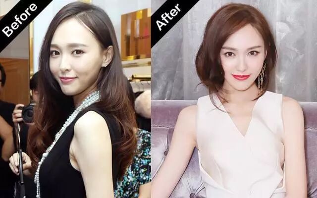 孙俪是大家公认的“长发路人、短发女神”的典型,因为孙俪的下颚角比较突出,是方形脸。左图长发时她的偏分短刘海,呈一条直线的形状,让本就有棱有角的脸看起来更凌厉了,而C型刘海的曲线则可以柔化脸部的硬朗线条。