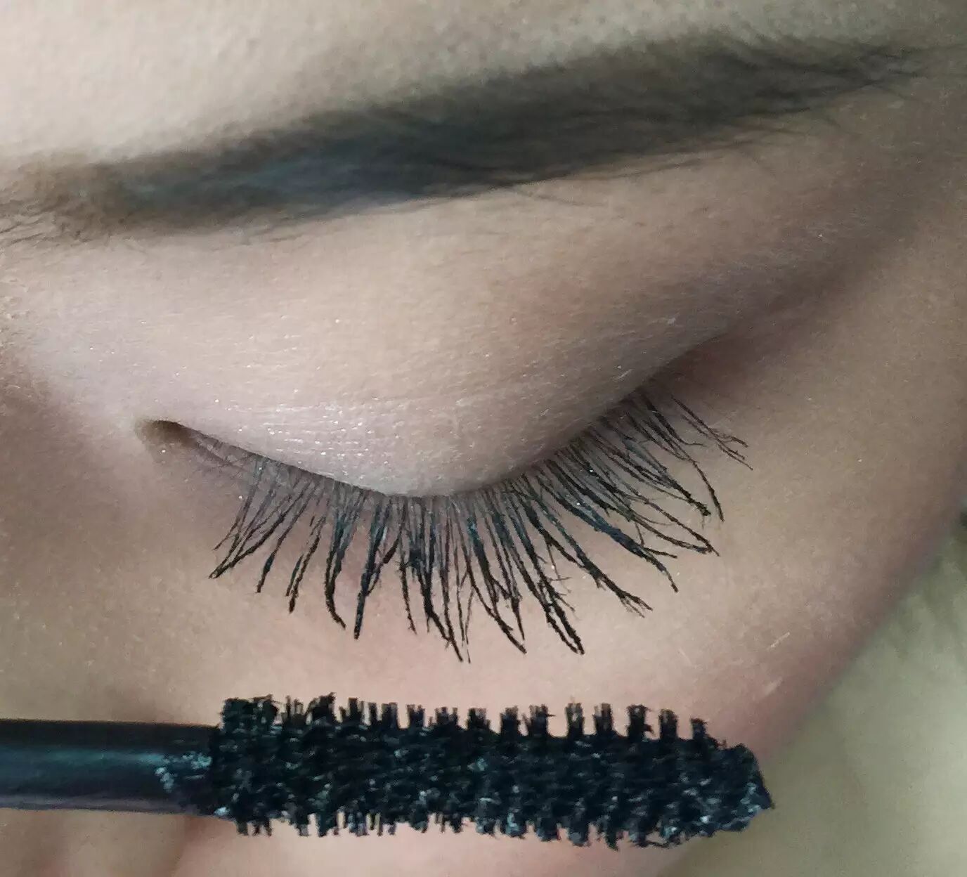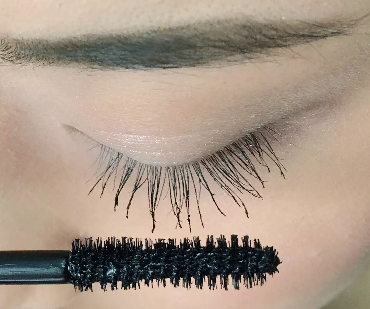 重复第一步,使用“高浓度炭黑嫁接液”(黑色膏体),在第二步的基础上再次刷拭,睫毛立刻展现前所未有的浓密卷翘。