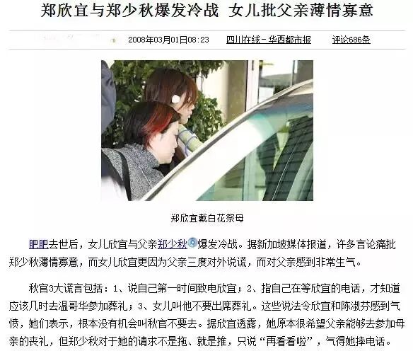 最为人熟知的就是郑少秋同肥姐生的欣宜