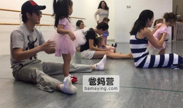 他会陪着大女儿去学跳舞。请注意,别人家的娃都是妈妈陪着,只有他一个大男人。