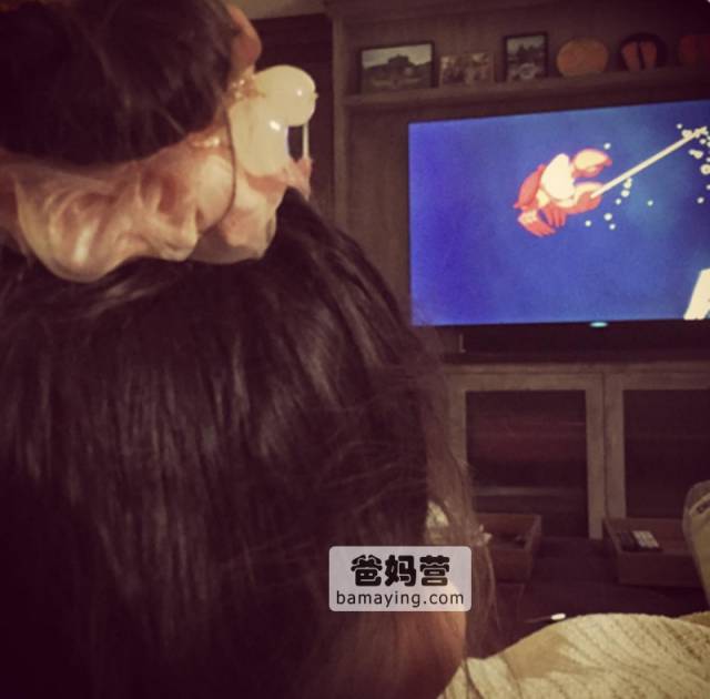 陪女儿看动画片。