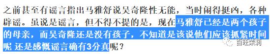 本来怀孕是个大喜事,可到了一姐夫这呢,或多或少有点不大想提,原因很简单:吴奇隆跟前妻马雅舒离婚时并不和平,对方有暗示四爷“那方面不行”