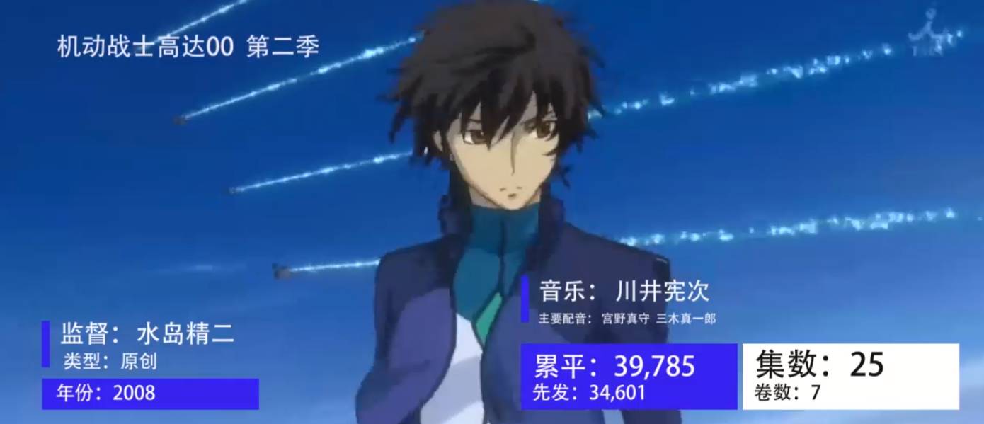 Seed续作的失败让日升不得不启用新的策划和监督,于是,《高达00》第一部和第二部先后于2007年10月和2008年10月播出,由执导过《钢炼03》的水岛精二担任监督,以四名高达驾驶员的成长为故事主线,以人与人之间的互相理解为主题。宫野真守,三木真一郎,神谷浩史,吉野裕行等大牌声优加盟,可以说取得的商业化效果基本让日升满意。
