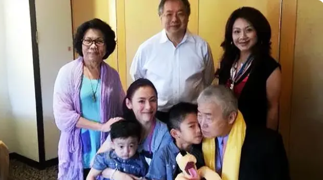 从张柏芝与陈玉书一家的照片看,这位干爹相当称职。一家人其乐融融。