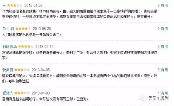 在日本,许多作家公认,宫部美雪最有资格继承吉川英治、松本清张和司马辽太郎的衣钵,还将她封为「平成国民作家」、「松本清张的女儿」。有这样的大牌作者,剧当然也不会差。在豆瓣上目前是7分,我估计过段时间会超过8分。