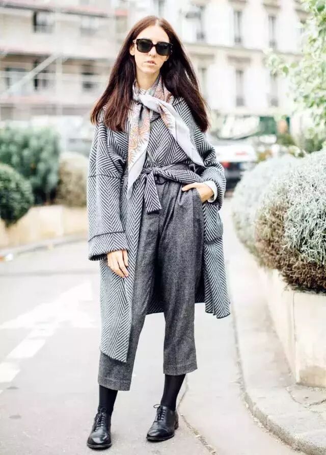 宽松的裤腿可以很好的隐藏下半身的身材缺陷,如果想保暖,里面完全可以套上保暖打底裤,在选择一双及踝靴,但注意靴口与裤边完美衔接是关键。