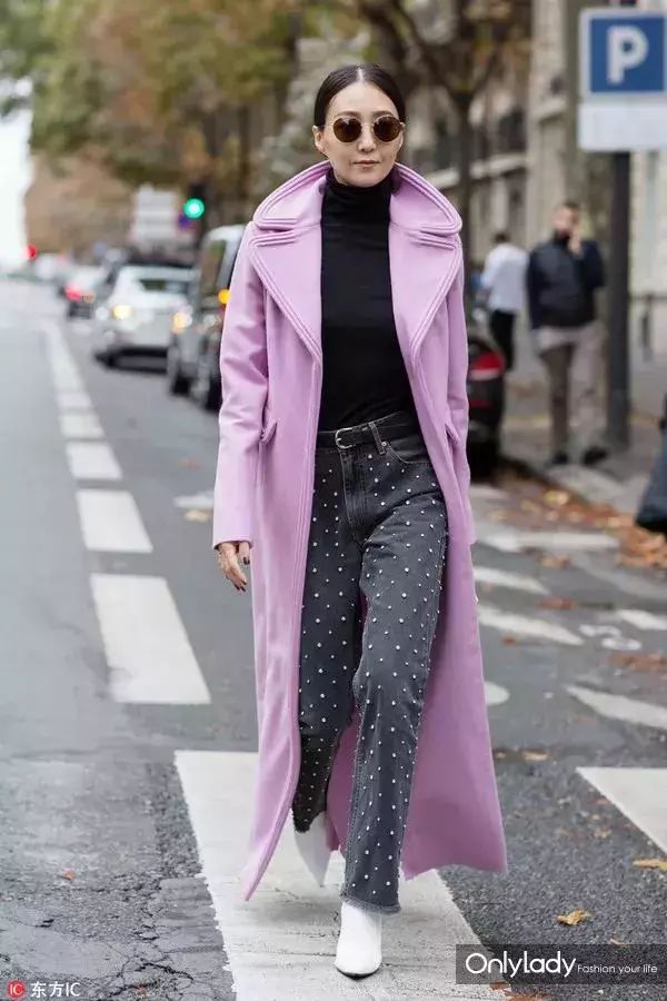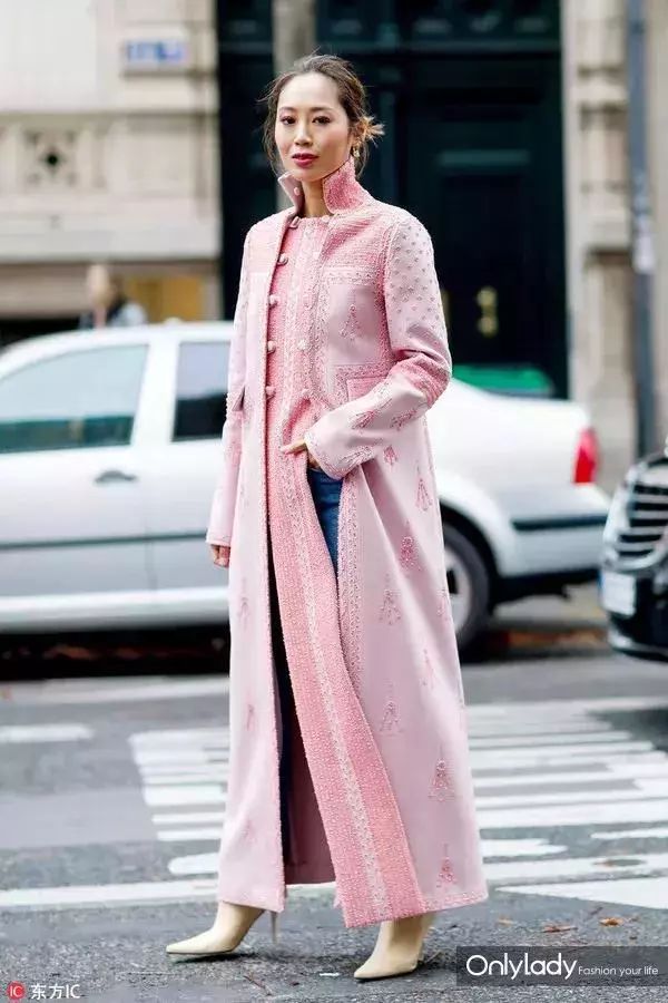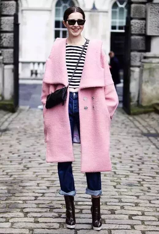 看腻了平日工作中黑白灰三色的通勤装,粉色大衣是非常不错的选择,相对于全红而言,这样柔和的粉并不会显得过分高调。
