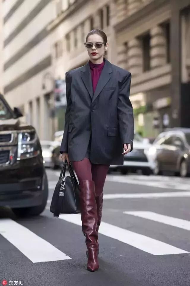 长靴与内搭要有距离,造成视觉上的拉长效果,大衣的长度可以选择中长款,内搭可以选择高腰款,用腰带提高腰线。