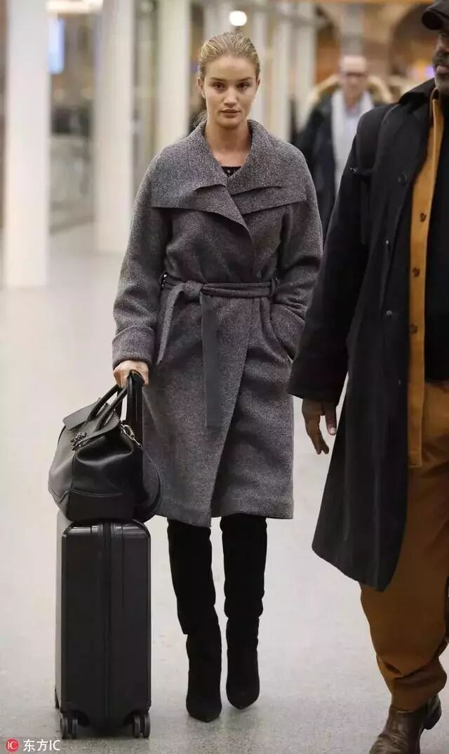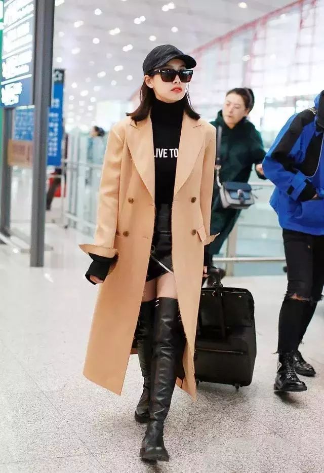 大衣的长度正好到脚踝,配了一双过膝的平底靴,和之前比较夸张的机场造型相比还满值得借鉴的~