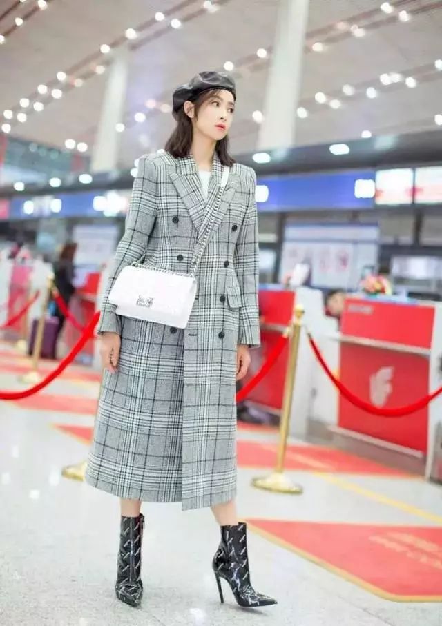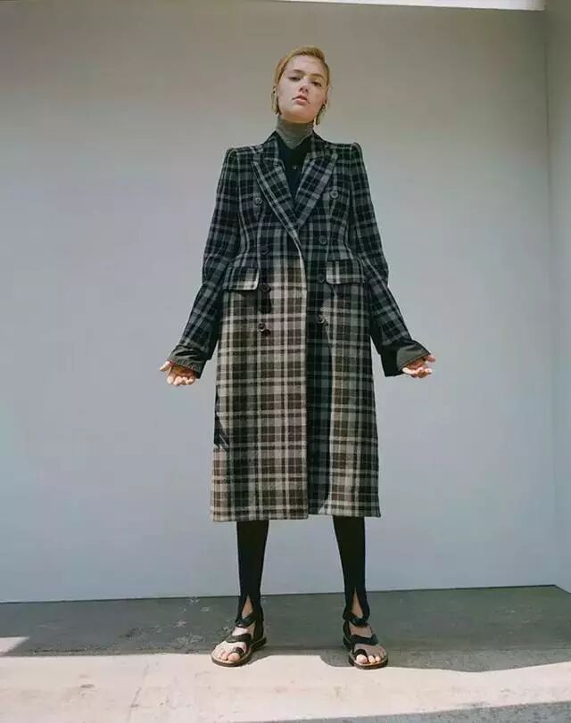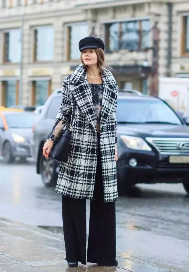 格纹大衣在视觉上有放大身形的效果,所以O姐不建议选择廓形宽松的款式,合身其实就刚刚好~