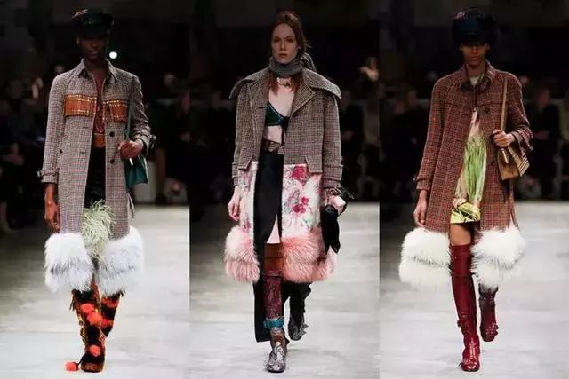 Prada 2017秋冬系列还在格纹外套上加上了羽毛的拼接元素,让大衣的质感更显高级。